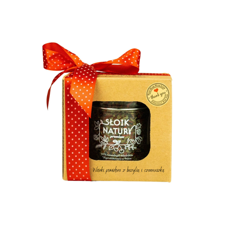 Przyprawa na prezent - Wiórki pomidora z czarnuszką i bazylią w słoiku (85 g)